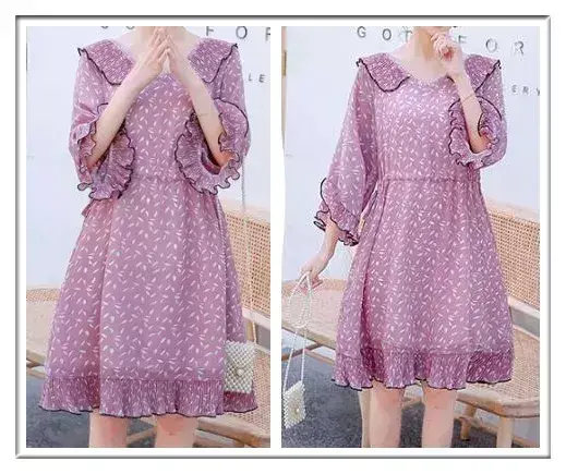 高颜值的七分袖雪纺孕妇连衣裙,花边另不设计,修饰颈部线条,个性图案,彰显个性,做个时尚准妈妈,宽松的下摆设计,优雅别致,极具时尚感。
