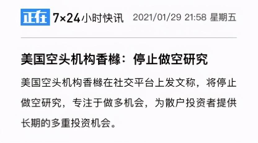 也在这一天,香橼再发了一条视频:安德鲁宣布,我做空了20年,从今以后,再也不做空了。