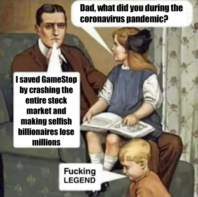 “你爸爸我拯救了GameStop,搞垮了整个股票市场,还叫那帮自私自利的混蛋富翁亏了好几百万!”
