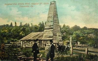 1859年,“石油钻探家德里克(Edwin Drake)在宾夕法尼亚用钻井的方法打成美国第一口油井