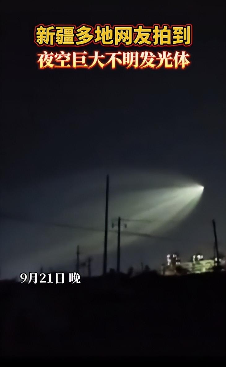 多个社交媒体上都出现了9月21日夜间的猛图,一个巨大的光斑出现在了新疆上空,尖端还在不停移动,看着实在是太震撼了!